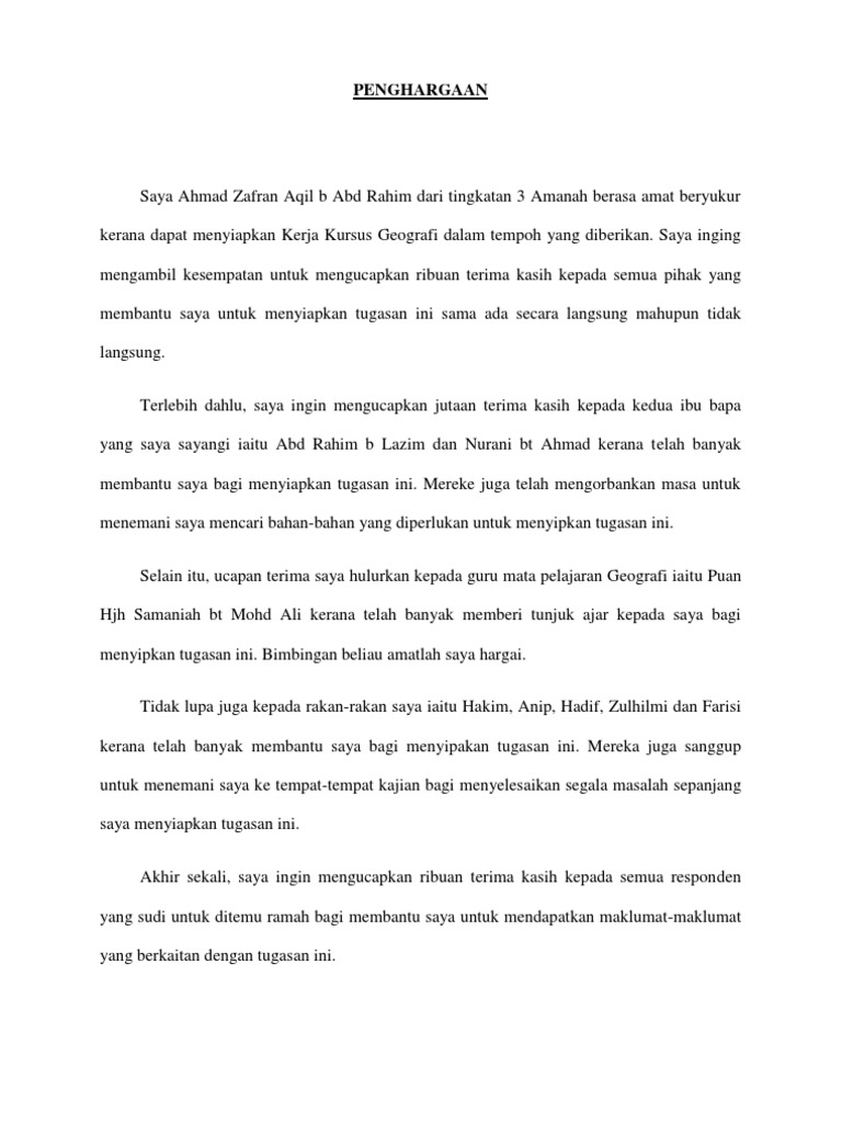Download as DOCX PDF TXT or read online from Scribd. Contoh kerja kursus geografi sem 3 stpm. Contoh kerja kursus geografi sem 3 stpm penghargaan terlebih dahulu saya mengucapkan terima kasih kepada pihak pentadbir sekolah smk rompin khasnya pengetua puan hajah hawiah binti chik dan penolong kanan tingkatan enam puan norzawati binti aziz kerana memberi sokongan dan kelulusan kepada saya untuk melaksanakan kerja.